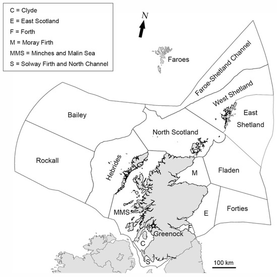 - Fleming, J. A history of British Animals, Exhibiting Their Descriptive Characters and Systematic Arrangement of the Genera and Species of Quadrupeds, Birds, Reptiles, Fishes, Mollusca, and Radiata of the United Kingdom; Bell & Bradfute: Edinburgh, Scotland, 1828; pp. 1–565. [Google Scholar]