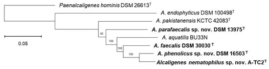 The genus Alcaligenes was first described by Castellani and Chalmers (1919) [23]. Members of this genus are Gram-negative, coccobacillary rods, motile, aerobic, and mesophilic. Bacteria of this genus have been isolated from plants, soil, sediment, bioprocess residues, water, and clinical samples [24,25,26]. Some species are resistant to heavy metals such as chromium, and other environmental pollutants such as phenol [24,27,28]. At the time of writing, this genus includes four species and three subspecies with valid published and correct names (https://lpsn.dsmz.de/genus/alcaligenes; accessed on 3 March 2023).
