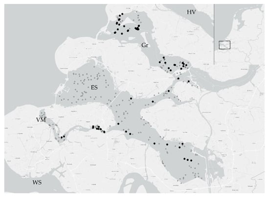 - Prins, T.; Nolte, A.; Rodriguez, S.C.; van der Heijden, L.; Buckman, L. Het Ecologisch Functioneren van Het Veerse Meer 2005–2023. Synthese. Rapport in opdracht van RWS, projectnr. 11209251-000. 2024; 92p. [Google Scholar]