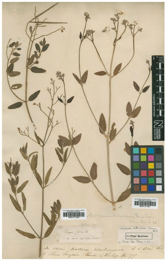 Mavrodiev, E.V.; Sytin, A.K.; Laktionov, A.P.; Vasjukov, V.M.; Penton, J.S., Jr.; Panfilova, K.I. What Is “Apocynum sibiricum”? A Critical Comment on the Long-Term Taxonomic Homonymy. Taxonomy 2024, 4, 314-325. https://doi.org/10.3390/taxonomy4020015