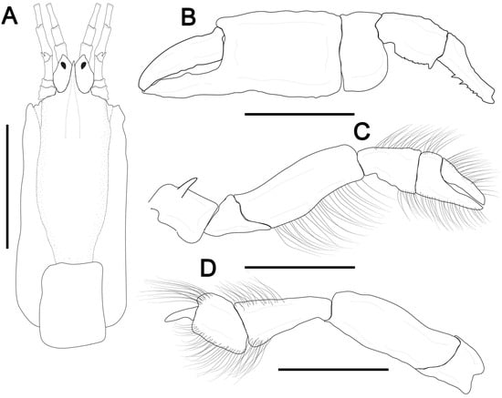 Axiidean shrimps constitute an important component of the Brazilian benthic communities [,]. The axiidean fauna of Brazil has been summarized (as Thalassinidea) by Coelho [], de Melo [] and, recently (as Axiidea), by Hernáez et al. []. The latter work listed 35 species across seven families []. This study provides a comprehensive review of the Axiidea deposited in the zoological collection of the ‘Museu de Oceanografia Prof. Petrônio Alves Coelho (MOUFPE)’ of the northeastern region of Brazil. With more than 15,000 lots of crustaceans, this collection contains the largest holdings of Axiidea in their respective geographic area. The results of this revision are presented in this paper.