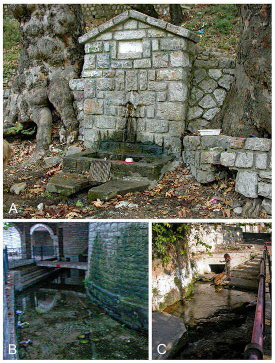 Studied localities: (A). spring of Achilles, ESE of Kalamakion, NW of Lamia (6), type locality of Lerniana dianadelicadoae. (B). spring in city centre in Thérmon, NE of Trichonida Lake (8). (C). spring Piges Pamisou, Peloponnese (10). Photographs Andrzej Falniowski.