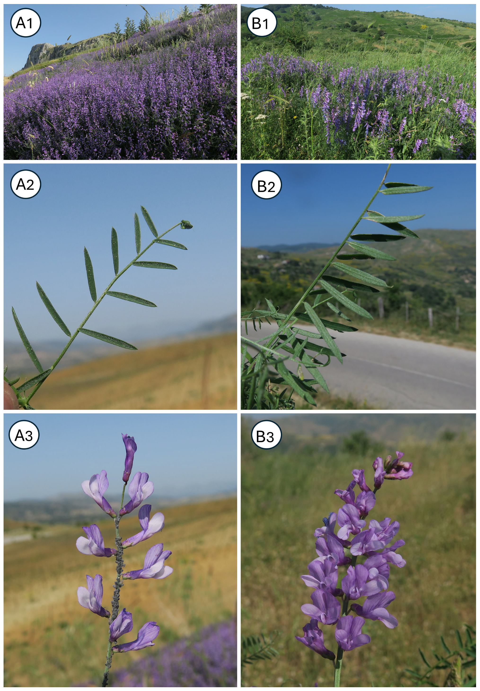 Chicago/Turabian StyleCambria, Salvatore, Veronica Ranno, Pietro Minissale, Gianpietro Giusso del Galdo, Cristina Salmeri, Danilo Monari, Alfonso La Rosa, Giuseppe Siracusa, and Filippo Scafidi. 2025. "Notes on the Vicia tenuifolia Complex with the Description of a New Species, V. barbatoi from Sicily" Taxonomy 5, no. 4: 63. https://doi.org/10.3390/taxonomy5040063