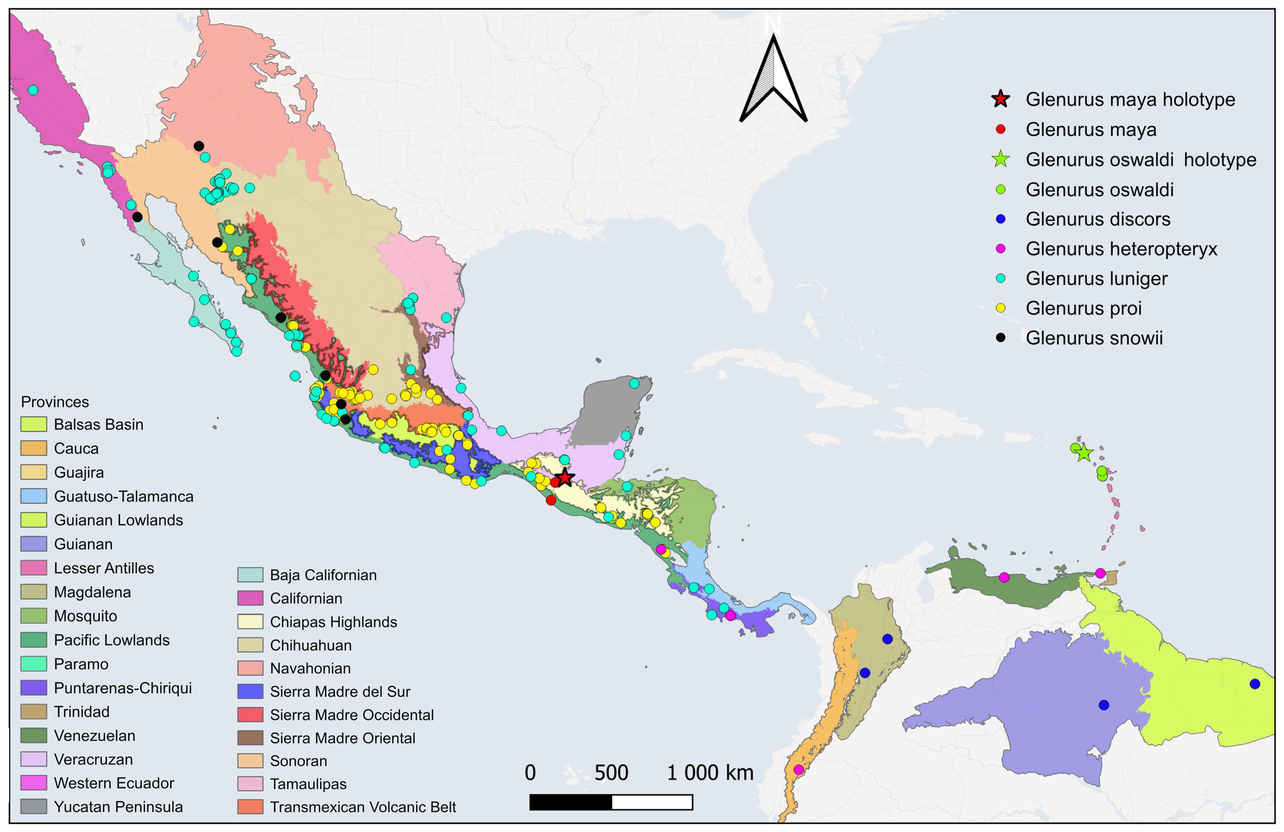 - Remarks. The holotype was previously stated to be a male [16], but in fact, it is a female (Figure 20a). The species has a wide distribution, occurring from northern Mexico to Costa Rica. It is now registered from Nicaragua and the Mexican states of Morelos, Queretaro, and Sinaloa for the first time. Albeit it shows a bit of morphological variation, the overall pattern seems constant. The head vertex might be raised or short, and the degree of suffusion on forewing subcostal area varies, as does the intensity of the subapical dark band. Glenurus proi can be readily differentiated from the remaining Mexican species by the dashed Costal vein on both wings, the mostly pale brown pronotum, and the contrasting thorax on lateral view.