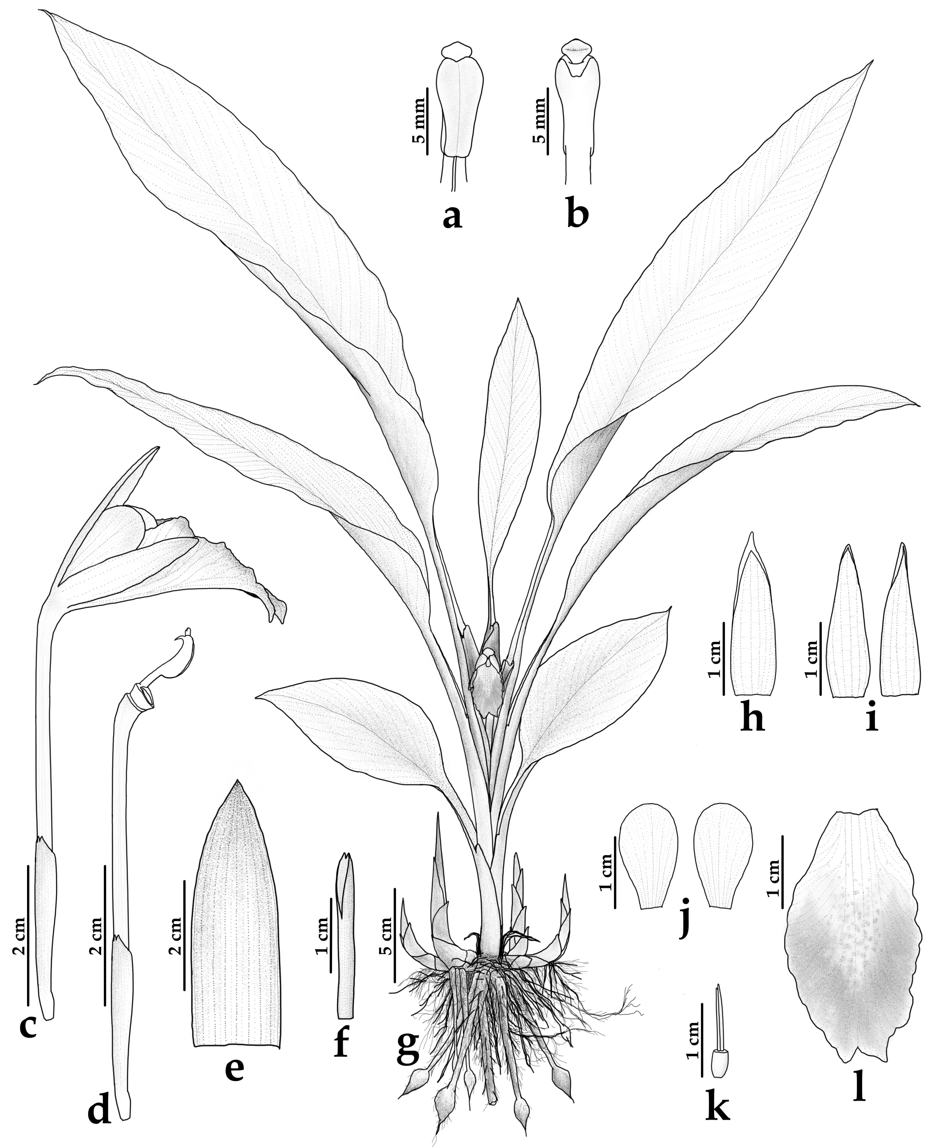 - Docot, R.V.A.; Santiago, L.C.P.; Funakoshi, H.; Lam, N.F. Two new species of Boesenbergia (Zingiberaceae) from Palawan, Philippines. Edinb. J. Bot. 2020, 77, 377–390. [Google Scholar] [CrossRef]