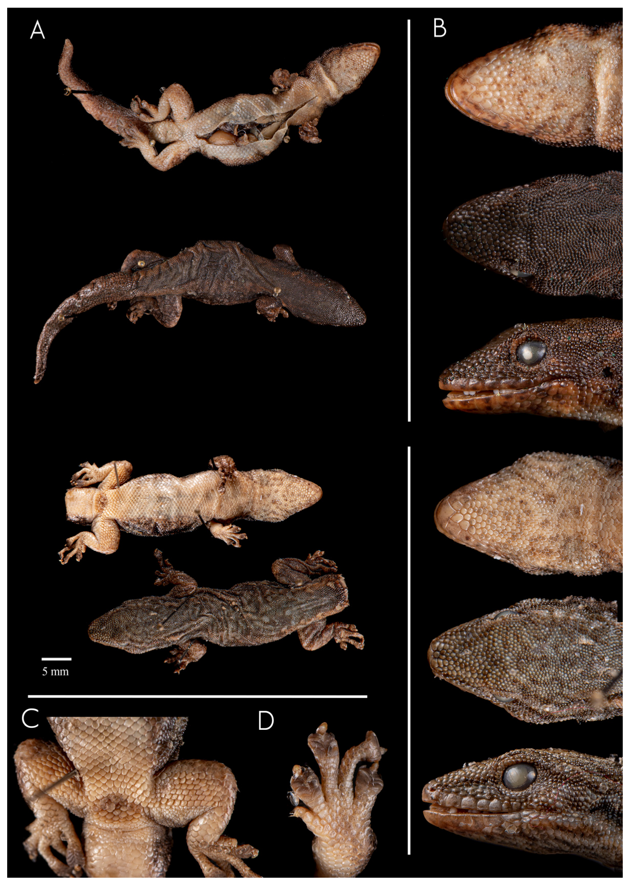 - Vences, M.; Herrmann, C.; Multzsch, M.; Gippner, S.; Razafimanafo, D.; Rahagalala, N.A.; Rakotomanga, S.; Rakotoarison, A.; Glaw, F.; Miralles, A. Revision of the Lygodactylus tolampyae complex, with descriptions of three additional new dwarf gecko species from Madagascar’s North West. Zootaxa 2025, 5665, 301–328. [Google Scholar] [CrossRef]