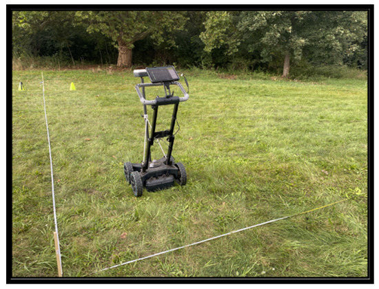 A total of 81 transect line scans were collected to cover the whole area following a path over Y direction, with a 25 cm crossline spacing and 1 cm inline spacing, using a time window of 40 ns and 650 samples per scan. An MA8000 GNSS receiver ensured centimetre-accurate positioning of all lines using built-in SSR augmentation corrections capabilities.