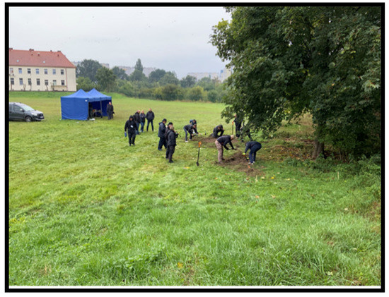 The organization of a specialist workshop with the participation of experts from different countries created an excellent opportunity to share experiences. The training was organized at the police compound in Wrocław. The area in question was secured and monitored. In preparation for the workshop, geological surveys were carried out in 2017 and 2018. The survey results found that the selected area is challenging for geophysical research due to numerous layers of underground debris, including small metal objects and bricks. The debris was created by military operations at this location in 1945. During World War II, there were German barracks, which have since been removed. After the end of the war, the Soviet army resided in the area until 1990. The debris deposition creates a challenging environment for geophysics. Fallen masonry and disturbed stratigraphy may create chaotic feedback that is difficult to interpret [6,7,8].