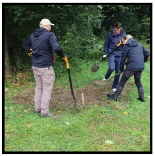 On the second day, excavations were carried out on two of the eight anomalies identified by the GPR, to assess their actual characteristics. Unfortunately, there was not enough time to examine all of the anomalies, so only the two most likely candidates were excavated. Further excavation could provide interesting comparative data regarding the causes of the additional anomalies. The teams decided to focus on two anomalies, which were designated as ‘possible burial location 5’ (Feature 1) and ‘possible burial location 7’ (Feature 2). An international team of archaeologists and police efficiently conducted the excavations, correctly interpreting the shapes of the features and expertly exploring their fills (Figure 5 and Figure 6).