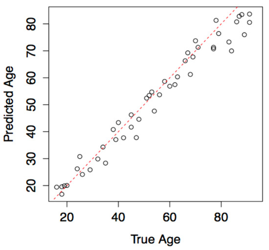 For the participants in this study, the TCM was shown to predict age reasonably well (RSME = 5.62 years, R2 = 0.85, PCC = 0.92) (Table 5). Mean absolute error (MAE), which does not rely upon square rooting prior to error averaging and is therefore less concerned with the magnitude of error than with the actual error (distance from the regression line), is often considered to be a more “steady” measure of model accuracy. For the females in this sample, this distance—or how close the estimated age was to actual age—translated to an average of four years.