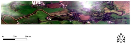 As in the Italian case, the satellite image four days after the report of the disappearance clearly shows the search area for Nicola Bulley along the Wyre River. Figure 4 highlights the meandering course of the river.