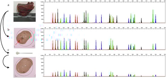 - Green, H.; Tillmar, A.; Pettersson, G.; Montelius, K. The use of FTA cards to acquire DNA profiles from postmortem cases. Int. J. Leg. Med. 2019, 133, 1651–1657. [Google Scholar] [CrossRef]