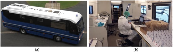 - Touron, P.; Siatka, C.; Pussiau, A.; Follot, S.; Fritz, T.; Petit, M.; Latifa, N.; Herrmann, J.-L.; Rottman, M.; Lemoine, A.; et al. A mobile DNA laboratory for forensic science adapted to coronavirus SARS-CoV-2 diagnosis. Eur. J. Clin. Microbiol. Infect. Dis. 2020, 40, 197–200. [Google Scholar] [CrossRef] [PubMed]