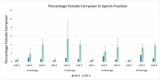 Average percentage female carryover and standard deviations in the sperm fractions for mixtures E–H.
