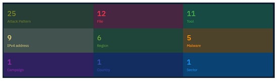 28]. Based on this report, a new incident object and its relationships were added to the OpenCTI instance: 19 Attack Patterns, 4 Tools, 3 Vulnerabilities, 2 Domain Names, 2 IPv4 addresses, and 6 other Indicators. The top three results reported by the tool for this incident were: