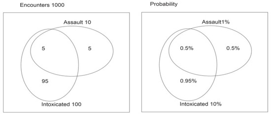 Figure 1, that p(intoxication given assault) is not the same as p(assault given intoxication). This simple truth does not require anybody to be “plunged into realms of unnecessary complexity”, but it does require care and attention to detail.