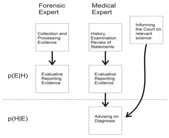 19]. It also meets a second requirement by assisting the court in evaluating the evidential probity of individual items of evidence, without encroaching on the court’s role in evaluating the hypothesis of guilt or innocence in the light of the totality of the evidence. So, it is the forensic scientist’s role first to source and process items of evidence and then to evaluate and report the evidential probity of each item of evidence under all hypotheses. It is the court’s role, specifically in a criminal case, the jury, to evaluate the hypotheses, given the totality of the evidence. So, the forensic scientist evaluates and reports the probability of the evidence, while the court evaluates the probability of the hypotheses given the totality of the evidence.