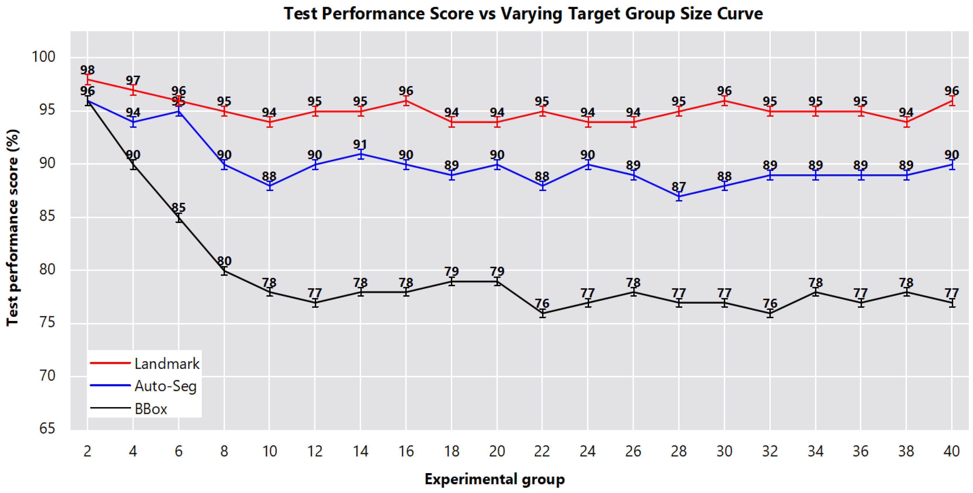 | Auto-Seg | 90.1 | 2.29 | Auto-Seg vs. Landmark | −9.18 | Yes | |