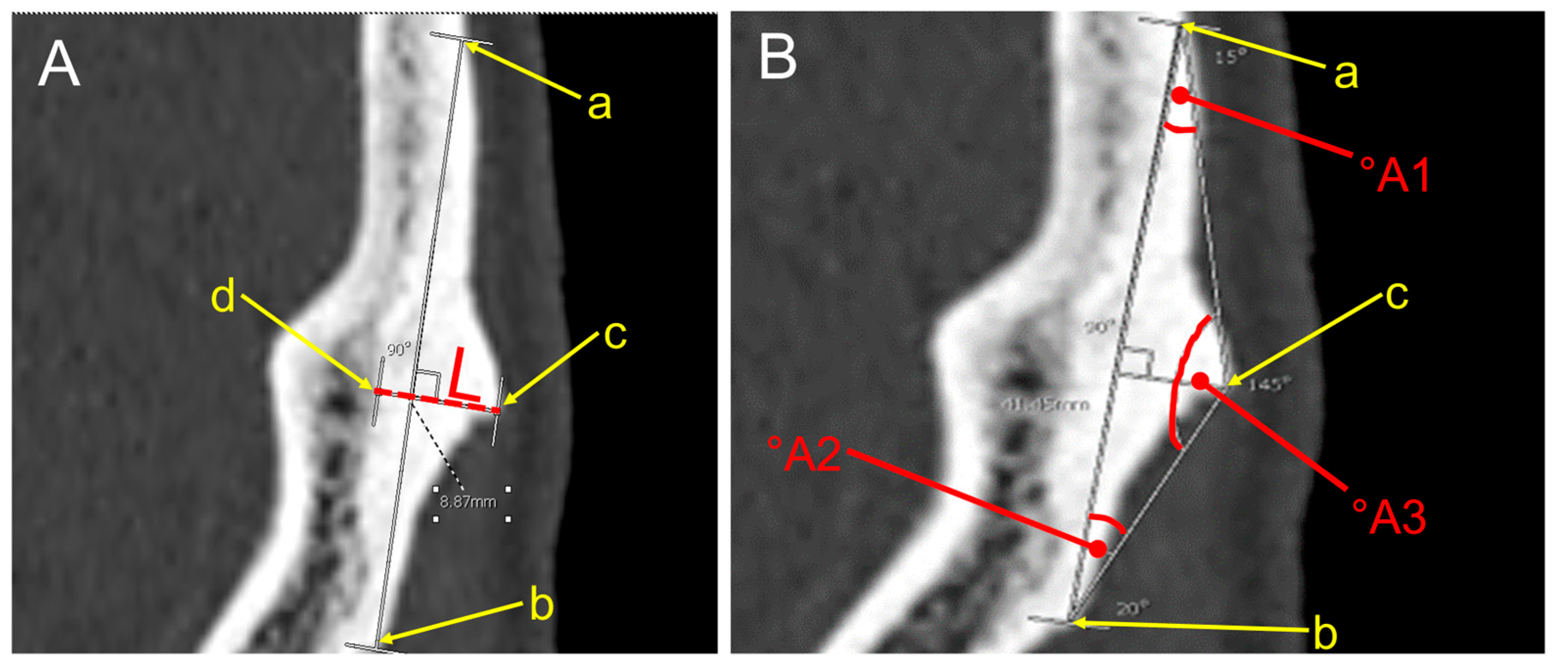 3.4. Morphometric Parameters Investigated in CT Scans of EOP Type II