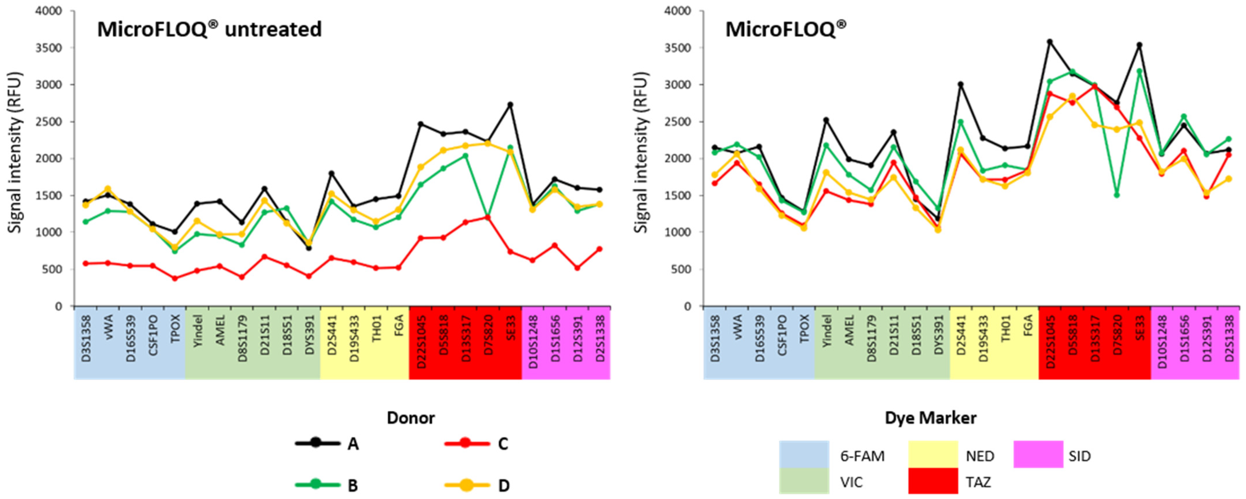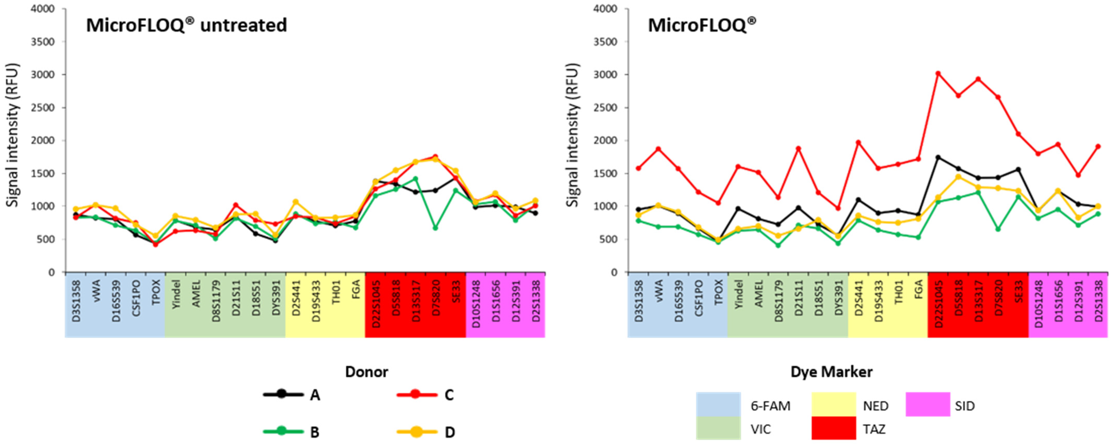 - Siatka, C.; Privat, L.; Franzoni, A.; Rosso, M.; Hubac, S.; Hermitte, F. Subsampling Blood Swabs as an Efficient and Good Practice for RapidHIT ID® Analyses. Forensic Sci. 2024, 4, 677–685. [Google Scholar] [CrossRef]