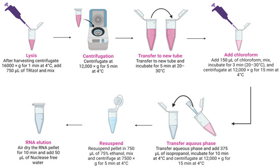 Workflow of Invitrogen TRIzol Reagent extraction protocol (created with BioRender.com).