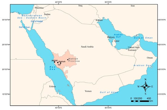 The research was conducted in Makkah province, the western part of Saudi Arabia, in Jeddah and Taif areas. Jeddah is 1600 km2 in area, located between 21.4858° N and 39.1925° E. Taif is located between 21.2854° N and 40.4260° E, with a land mass of 321 km2. Taif is known for its cool climate, scenic mountains, and agricultural significance. The study population was drawn from non-institutional stables including from various traditional and private livestock farms. The study period spanned about one year, from September 2022 to August 2023 (Figure 1).