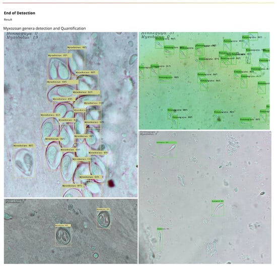 From a forward-looking perspective, further advancements in web and mobile applications for the detection of myxozoans and parasites aimed at increasing the number of identifiable genera with continuous improvements in precision, accuracy, and real-time performance are expected. This is an important field for future research, including topics such as enhancing the quality and diversity of datasets and addressing the challenges in detecting multiple small targets in complex scenarios.