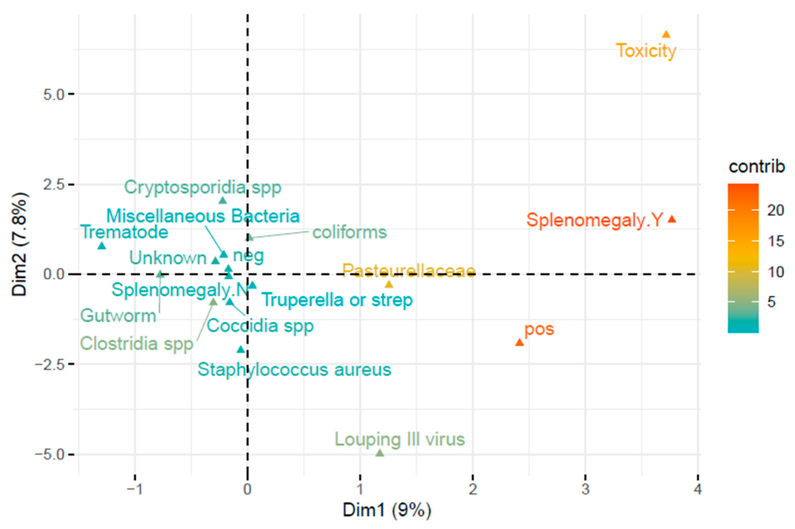 3.4. Multivariate Analysis of Disease Agents Associated with A. phagocytophilum Co-Infection