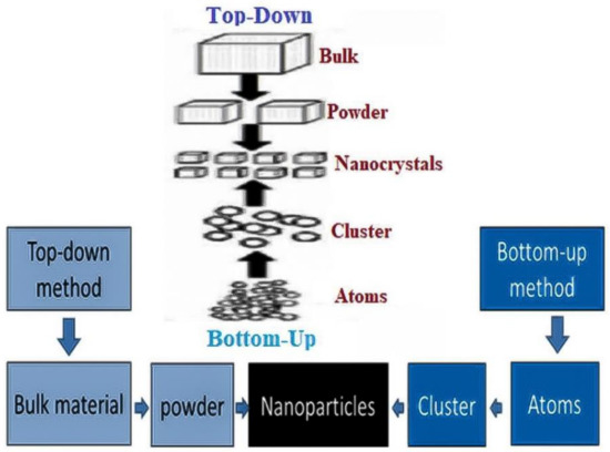 In physical methods two routine approaches can be used to synthesis nano-structured materials, top-down technique and bottom-up technique (Figure 1). The major difference is based on the size of primary entities used to build nano materials with or without atomic level control [16].