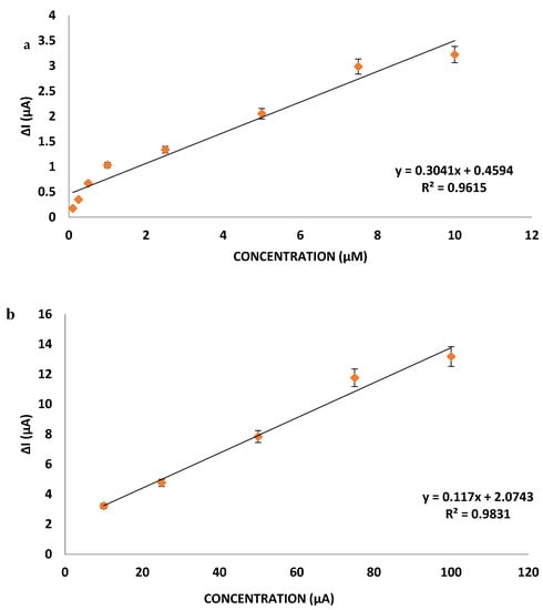 In differential pulse voltammetry, measurements were made in the potential range of −0.4 to 0.6 volts, at a rate of 0.005 volts per second. In the cyclic voltammetry method, the measurement method was performed by taking three cycles to apply 0.005 volts per second in the potential range of −0.4 to 0.8 volts. The measurements were made with three replicates.