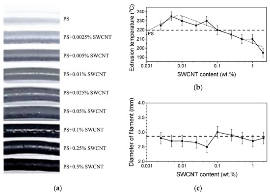 Baskakova, K.I.; Okotrub, A.V.; Bulusheva, L.G.; Sedelnikova, O.V. Manufacturing of Carbon Nanotube-Polystyrene Filament for 3D Printing: Nanoparticle Dispersion and Electromagnetic Properties. Nanomanufacturing 2022, 2, 292-301. https://doi.org/10.3390/nanomanufacturing2040017