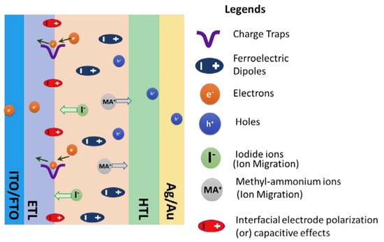 - Zhang, Y.; Liu, M.; Eperon, G.E.; Leijtens, T.C.; McMeekin, D.; Saliba, M.; Zhang, W.; de Bastiani, M.; Petrozza, A.; Herz, L.M.; et al. Charge Selective Contacts, Mobile Ions and Anomalous Hysteresis in Organic–Inorganic Perovskite Solar Cells. Mater. Horiz. 2015, 2, 315–322. [Google Scholar] [CrossRef]