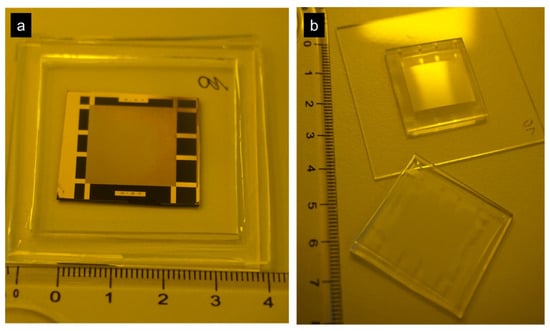 - Mühlberger, M.; Bergmair, I.; Klukowska, A.; Kolander, A.; Leichtfried, H.; Platzgummer, E.; Loeschner, H.; Ebm, C.h.; Grützner, G.; Schöftner, R. UV-NIL with Working Stamps Made from Ormostamp. Microelectron. Eng. 2009, 86, 691–693. [Google Scholar] [CrossRef]