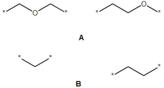 Figure 5. Equivalent ways to represent the backbone of polyethylene glycol (A) and polyethylene (B). - (3)