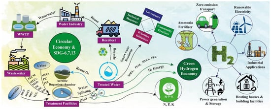 Hydrogen production from water industries for a circular economy and a transition toward global energy sustainability. Reproduced with permission from [35], published by Elsevier B.V, 2023.