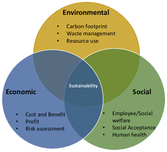 Sustainable development as a concept comprises three core elements. Reproduced with permission from [49], published by Elsevier Ltd., 2023.