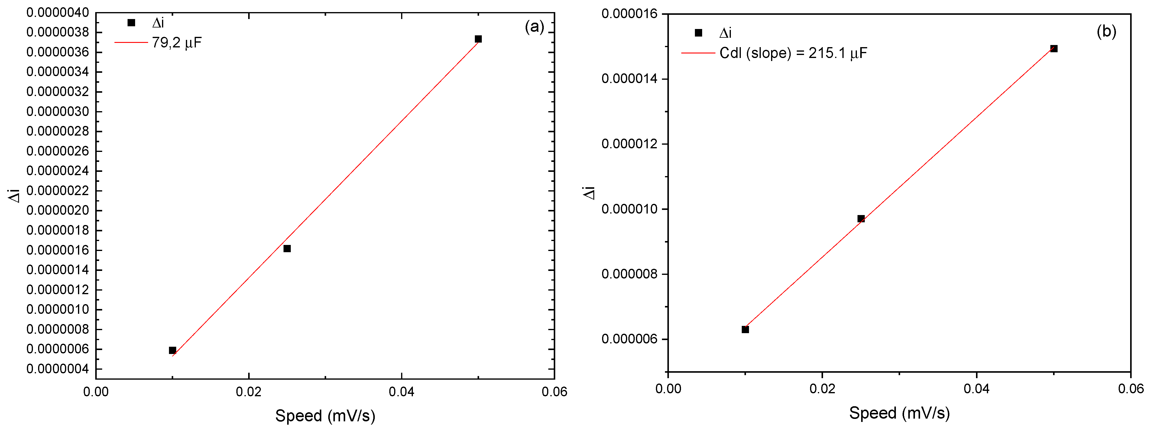 Samples (Without Lighting) | Cdl (µF) | ECSA (Cs = 25) cm2 | ECSA (Cs = 40) cm2 | ECSA (Cs = 45) cm2 |