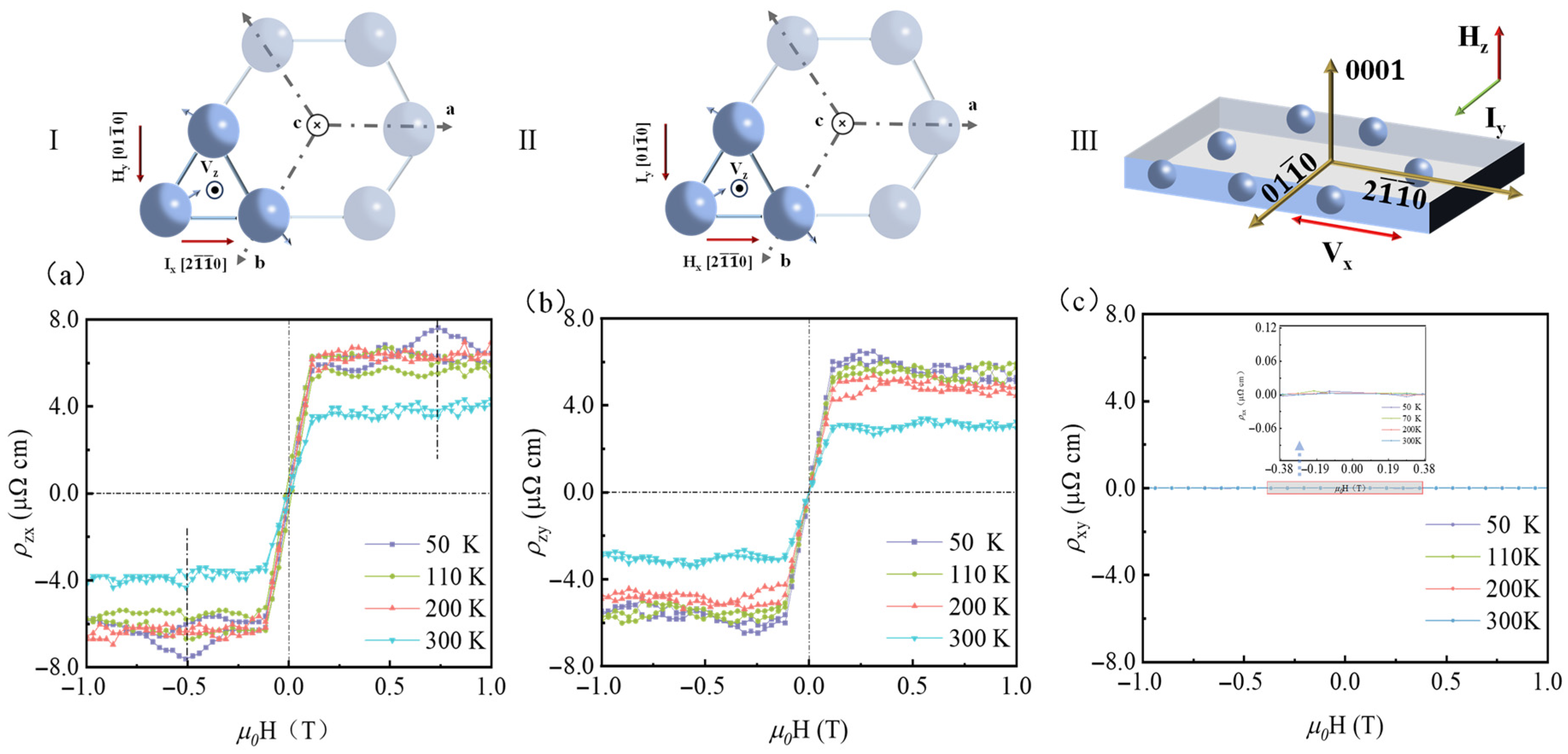 z), no significant AHE is observed, consistent with the minimal spontaneous magnetization along the [0001] direction, as Mn moments lie primarily within the kagome plane [