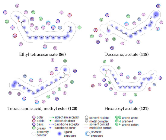 | Docosano, acetate (118) | −7.71306992 | - | - | - | - | - |