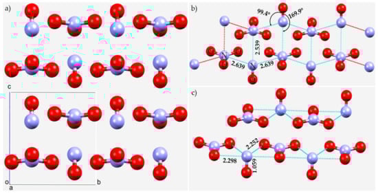 The α-phase (third allotrope) of solid N2, with Z = 4, space group Pa-3, Figure 1a, determined using electron diffraction measurements [], is mainly stabilized by π···N (lone-pair) interactions between the N2 molecules. The centers of the N2 molecules are on an f.c.c. lattice with each molecule pointing in a different direction. The intermolecular distance between N in one molecule and the midpoint of the π bond in a neighboring molecule is 3.565 Å. We attribute this interaction to π-centered pnictogen/nitrogen bonding.