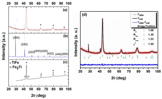 - Hotta, H.; Abe, M.; Kuji, T.; Uchida, H. Synthesis of Ti-Fe Alloys by Mechanical Alloying. J. Alloys Compd. 2007, 439, 221–226. [Google Scholar] [CrossRef]