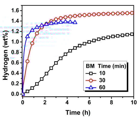 - Aoyagi, H.; Aoki, K.; Masumoto, T. Effect of Ball Milling on Hydrogen Absorption Properties of FeTi, Mg2Ni and LaNi5. J. Alloys Compd. 1995, 231, 804–809. [Google Scholar] [CrossRef]