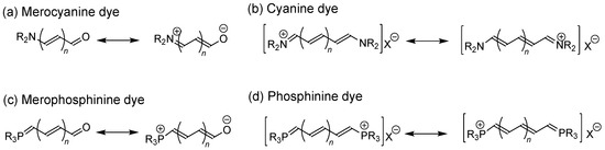 - Depoorter, H.; Nys, J.; van Dormael, A. Phosphorus containing polymethine dyes I. Methods of preparation and chemical properties. Bull. Soc. Chim. Belg. 1964, 73, 921–943. [Google Scholar] [CrossRef]
