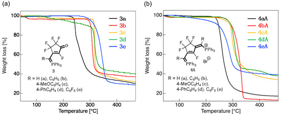 2.3. Typical Synthetic Procedure of [2,4,4,5,5-pentafluoro-3-{1-phenyl-1-(triphenyl-λ5-phosphonilidene)methyl}-2-cyclopentenylidenemethyl]triphenylphosphonium Bromide (4bA)