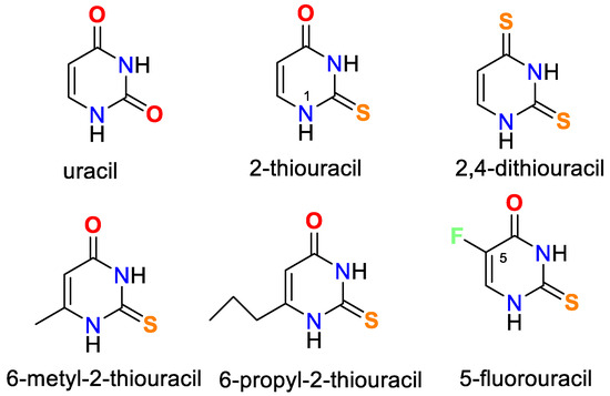 Marinova, P.E.; Tamahkyarova, K.D. Synthesis and Biological Activities of Some Metal Complexes of 2-Thiouracil and Its Derivatives: A Review. Compounds 2024, 4, 186-213. https://doi.org/10.3390/compounds4010010