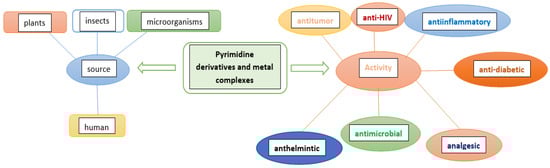 - Patil, S.B. Recent medicinal approaches of novel pyrimidine analogs: A review. Heliyon 2023, 9, e16773. [Google Scholar] [CrossRef] [PubMed]