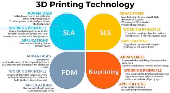 Based on these aspects, this work presents a bibliographic review of the main 3D printing techniques and polymers that are currently used for the production of novel personalized DDSs for biomedical applications. The theme is presented in detail in the following sections.
