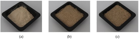 Based on the obtained amount of each PPeel fraction, sieved PPeel was divided into five different fractions/classes: 0–53 μm, 53–125 μm, 125–250 μm, 250–315 μm, and 315–500 μm grain size. In addition, one class was formed using PPeel powder that had not gone through the sieving process, to represent the whole, unclassified material. Fractions of dried PPeel powder were stored in sealed vacuum bags (320300, GUDE GmbH, Rheine, Germany) at room temperature (~22.5 °C and ~35% r.h.) prior to further use.