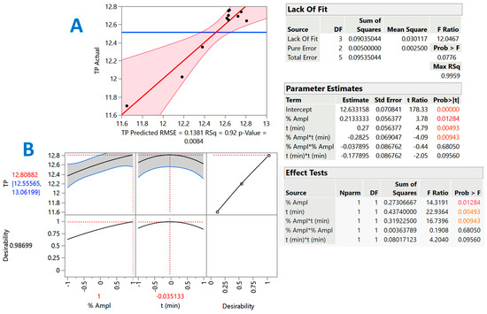 | X1 (%Ampl) | X2 (t, min) | Measured | Predicted | |