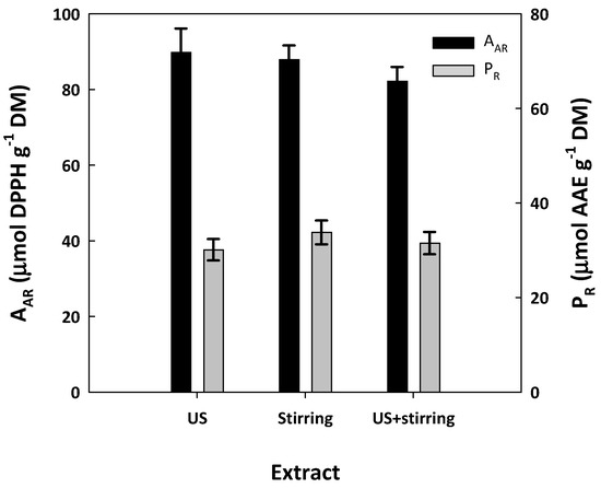 2.6. Total Polyphenol Yield (YTP), Ferric-Reducing Power (PR), and Antiradical Activity (AAR) Determination